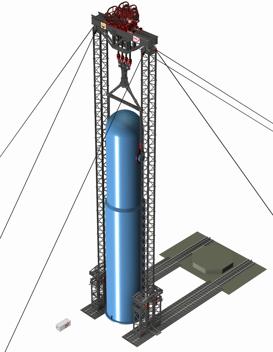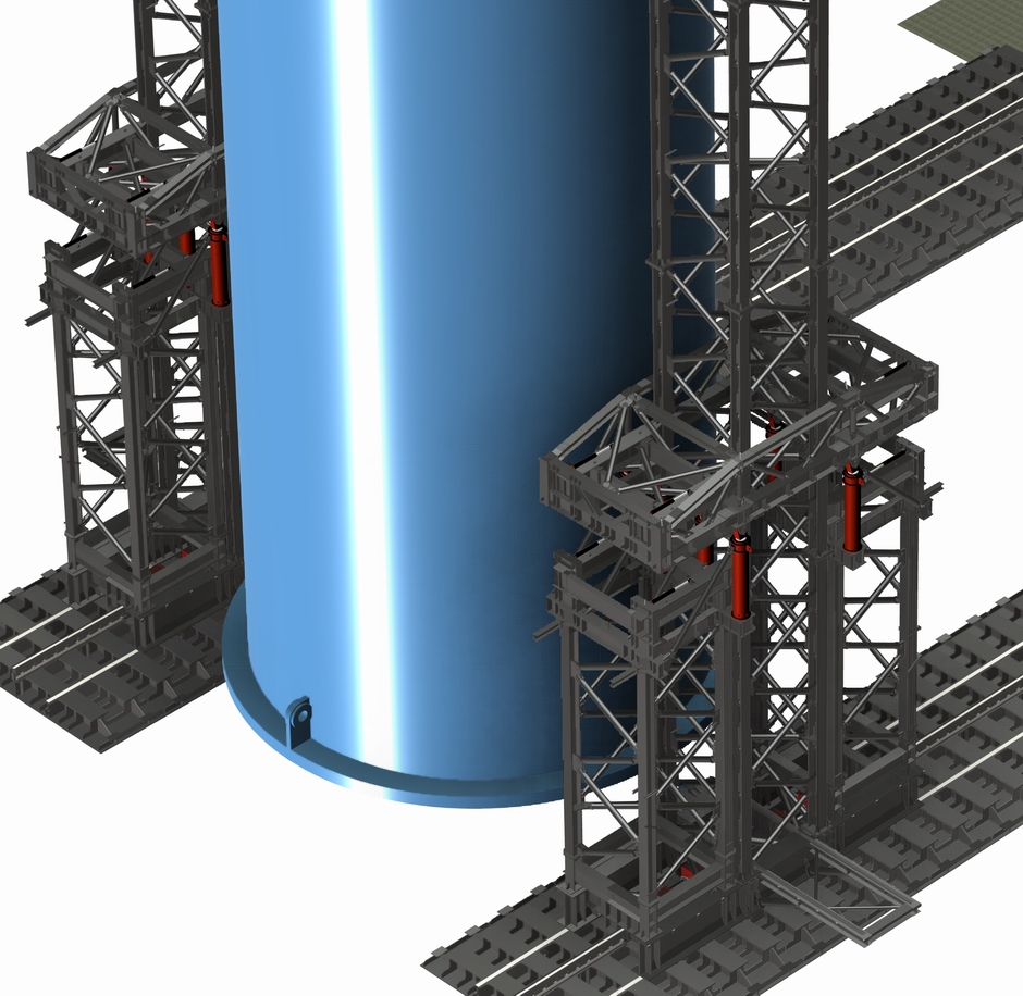 The MYQ5000 jacking tower system was designed and supplied by DLT Engineering in 2014, to China Petroleum First Construction Company, based in Louyang, China. The tower system primarily intended for the erection of heavy petrochemical vessels, weighing up to 5,000 tonnes and measuring up to 160m high. The MYQ5000 was successfully function tested to 110% capacity (5,500 tonnes) static load tested to 125% capacity (6,250 tonnes) in December 2014 (see picture below).
