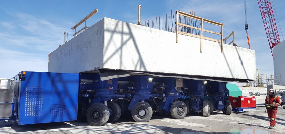 First precast footing being moved by the transporter in March 2016....
