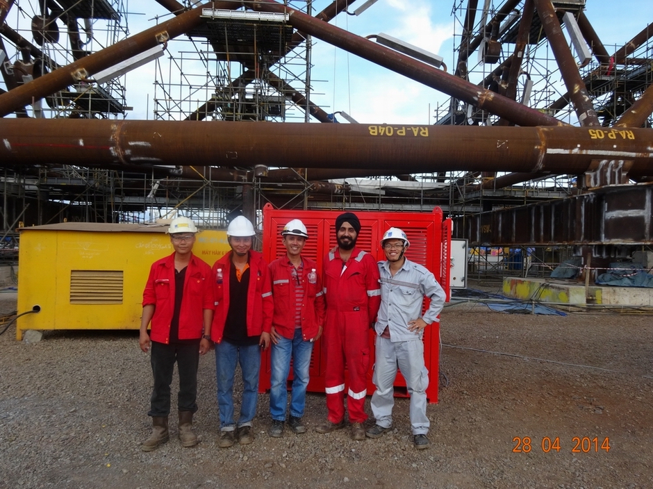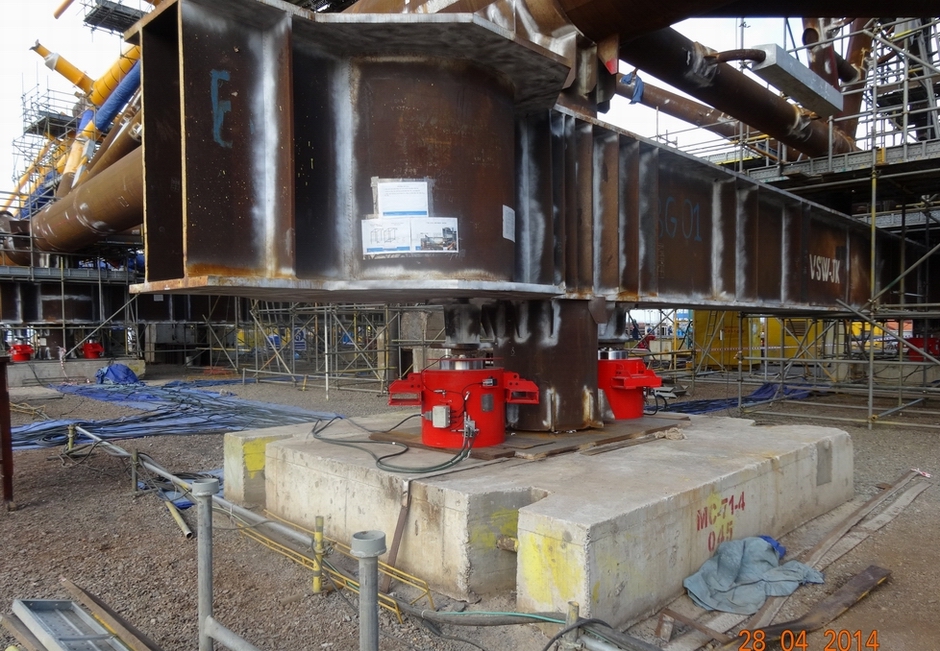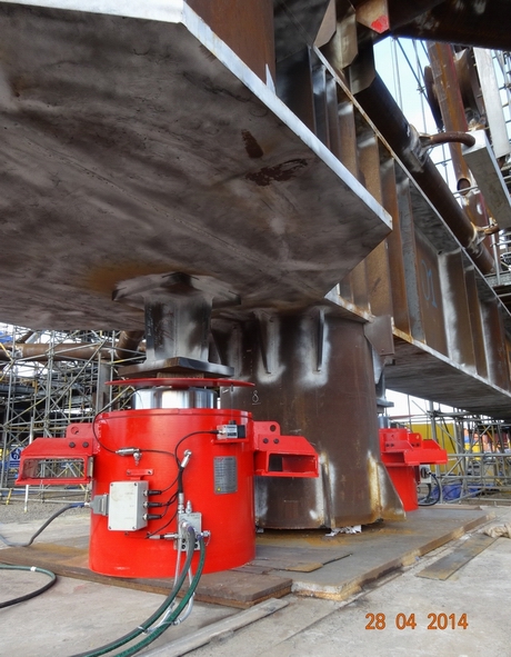 The jacks were also provided with the provision of pooling, so that two jacks of different capacities can be placed close to each other during operation. Our Engineer provided training and certified PTSC personnel on Operation and Maintenance of the system. The first operation for the weighing of PTSC MC Golden Lion Jacket was successfully carried out in the presence of a DLT Engineer in April 2014 at PTSC offshore yard, Vietnam. Trained PTSC Personnel were able to use the system themselves to carry out the second operation in May 2014.