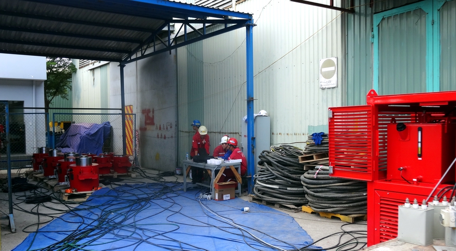 Testing of Jacks at PTSC Offshore yard before the weighing operation