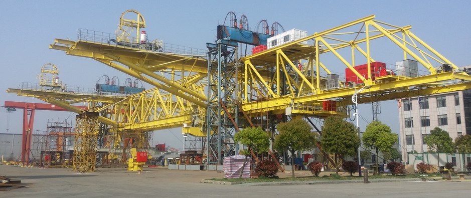 This new type of gantry provides a fast and economic solution for the erection of twin box marine viaducts, and removes the need for over deck delivery from a transfer gantry or from a casting yard at the end of the bridge. The casting yard can therefore be located anywhere in the region with water frontage and the viaduct can be constructed in separate sections without the need to provide a continuous line for over deck delivery.