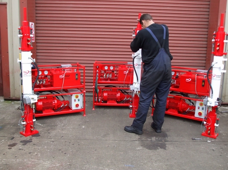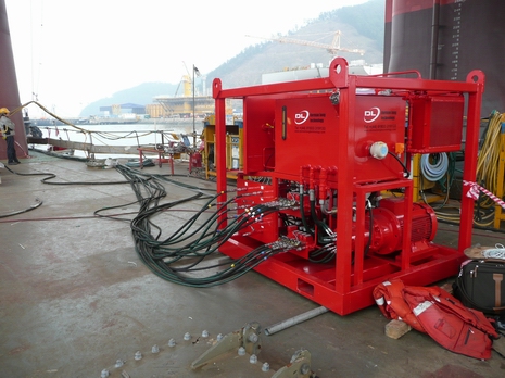 3 x DL-S15 system (45 tonnes capacity total) for use inside thruster rooms, with modular electric power pack designed to pass through bulk head doors.